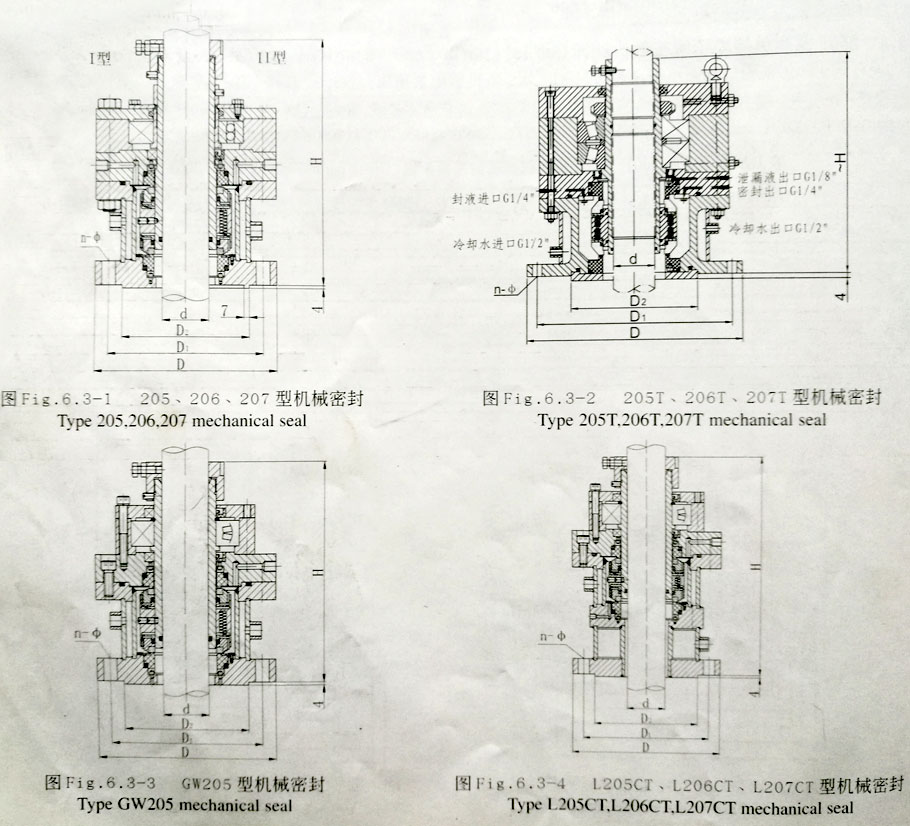 L205CT, L206CT, L207CT type is 205, 206, 207 machine seals on the basis of adding a thermostat (that is, under the cooling water jacket), suitable for - 40 - 350 C temperature range.